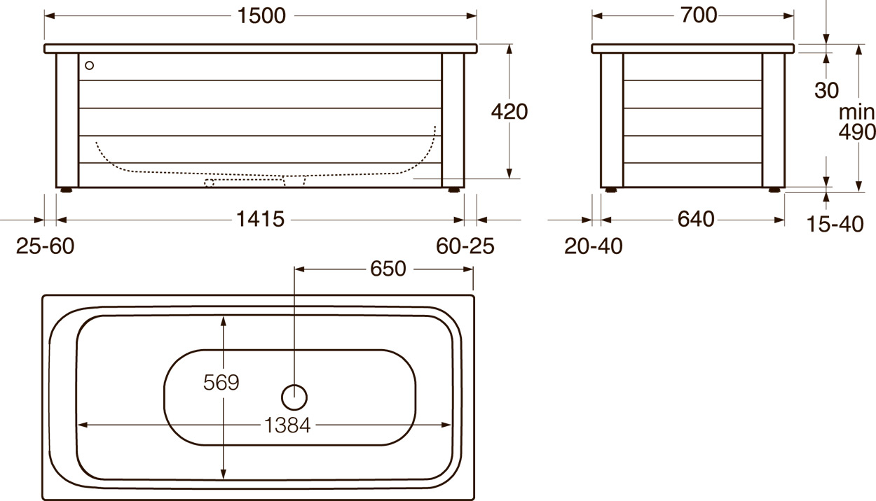 GUSTAVSBERG 1504 KOMBI BADEKAR, 1500X700 HVIT
