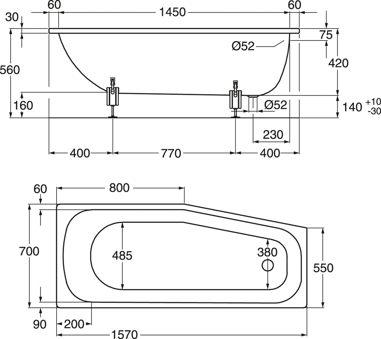 Gustavsberg badekar for innbygging i størrelse 157x70cm er et moderne og slitesterkt badekar i emaljert titantstål.