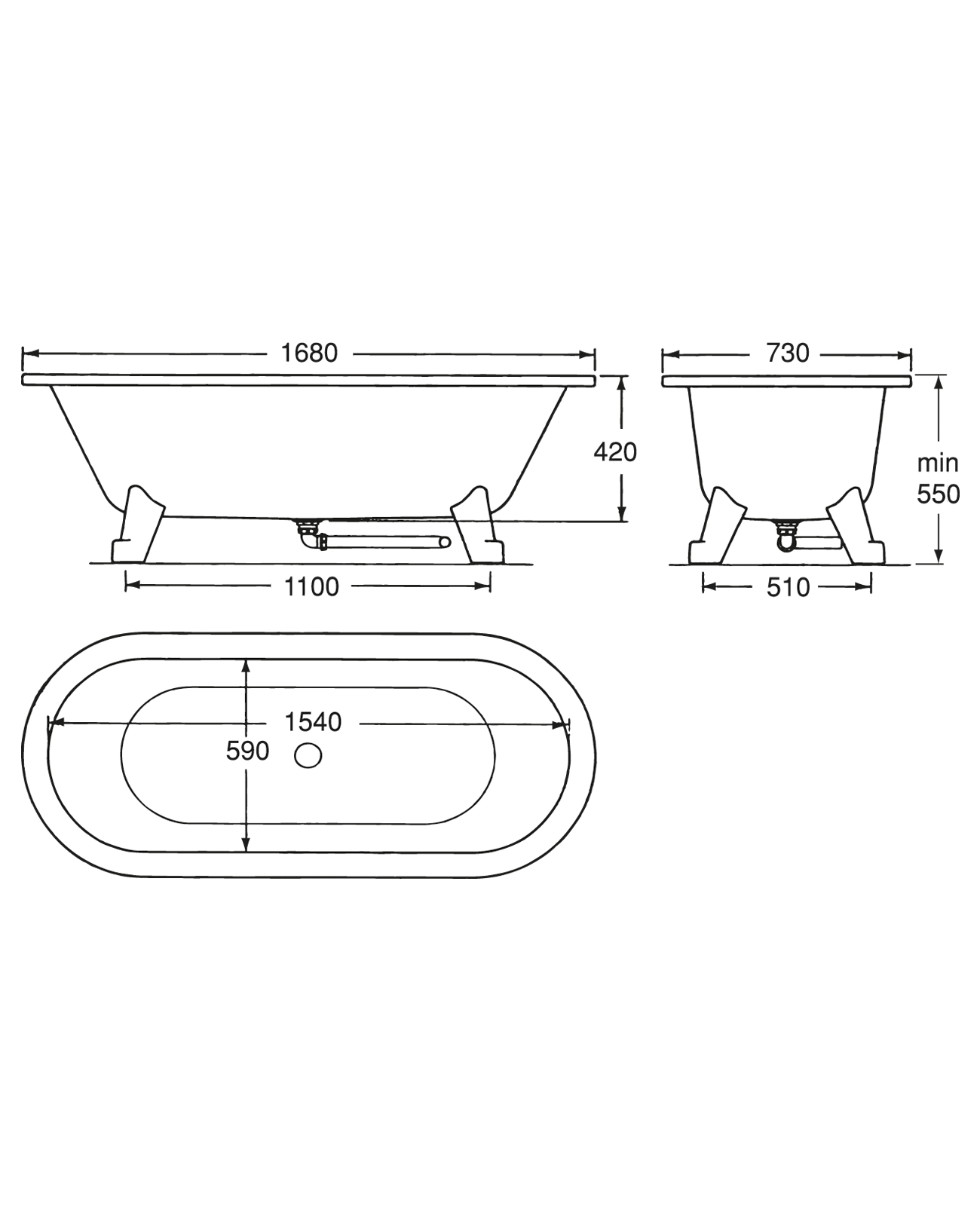 Gustavsberg badekar i størrelse 168x73cm er et lekkert og slitesterkt frittstående badekar i emaljert titantstål.