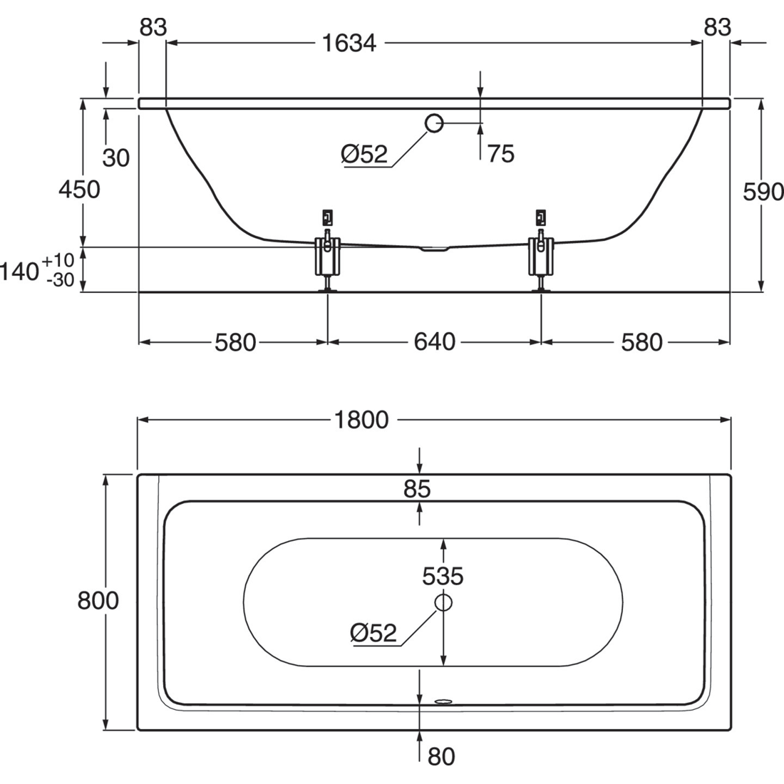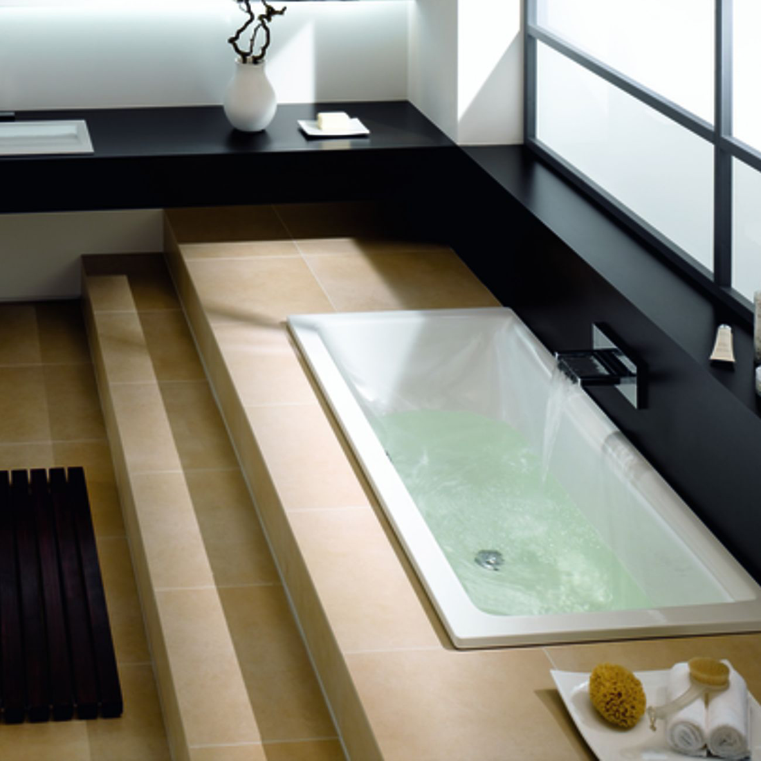 Gustavsberg badekar for innbygging i størrelse 180x80cm er et moderne og slitesterkt badekar i emaljert titantstål.
