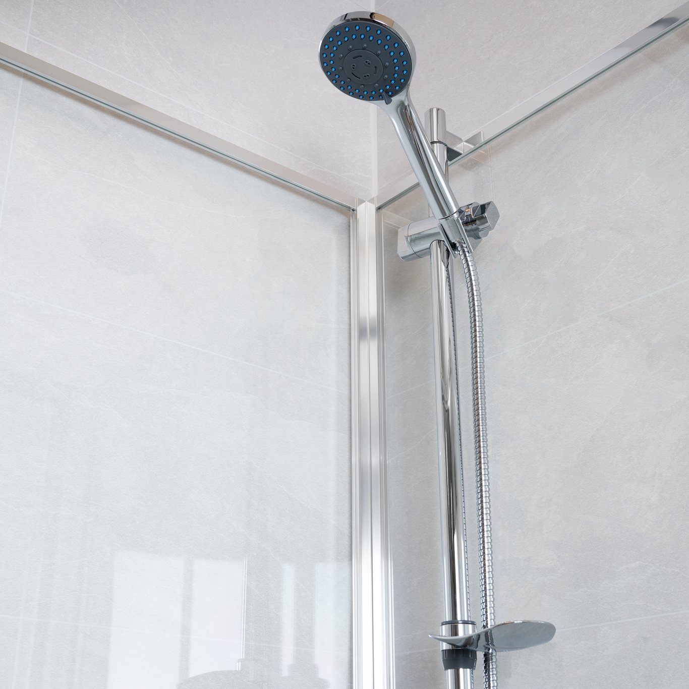 For at du og din familie skal ha en tryggere dusjopplevelse, kommer de doble skyvedørene med en tykkelse på 6mm av herdet glass. Dørene har også opphengshjul som gjør det enkelt å ta dem av for rengjøring. Med i pakken får du også dusjstang og dusjslange, samt et dusjhode med hele tre strålefunksjoner.