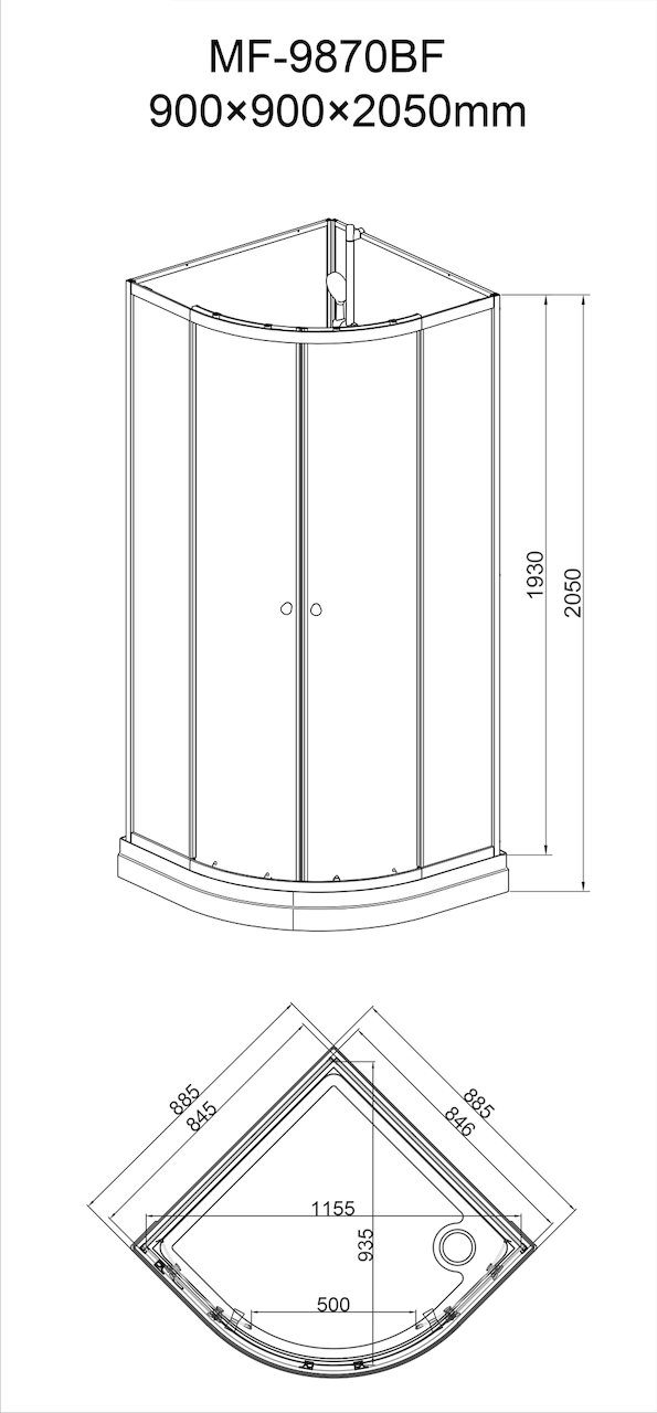 CELESTE SERATA BUET DUSJKABINETT 90X90X205 SIKKERHETSFOLIE SORT
