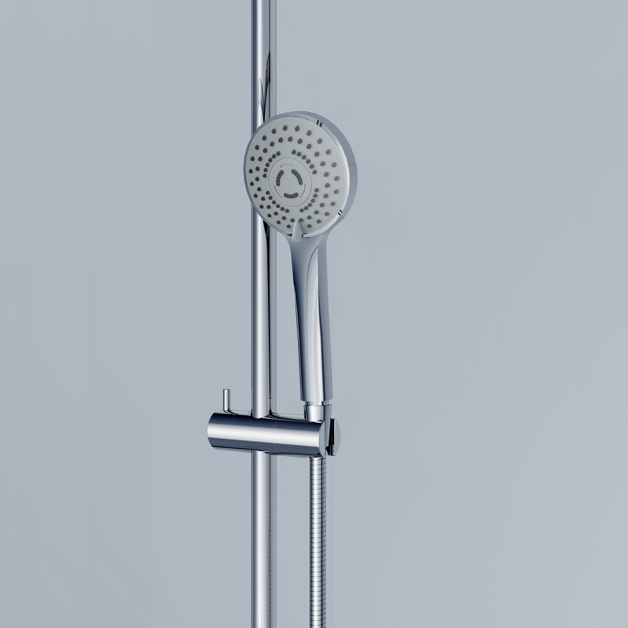 Dusjkabinettet er utstyrt med skyvedører med doble hjul for jevn og stabil åpning. Det leveres komplett med dusjkar og hånddusj med 3 funksjoner.