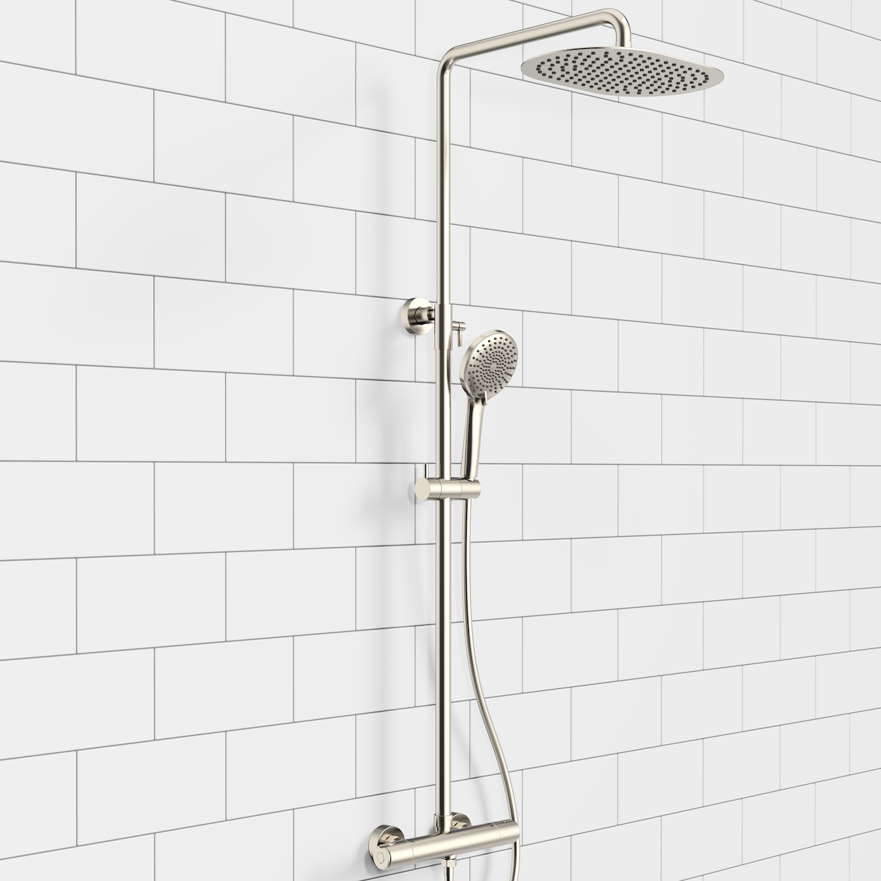 Dette dusjsettet fra Celeste har et stilrent design, med en oval takdusj som gir en behagelig spafølelse.