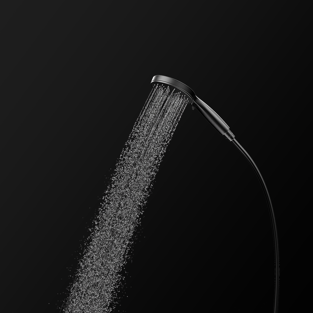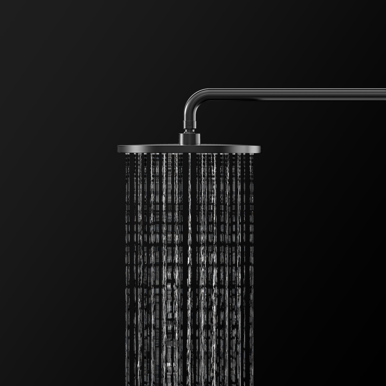 Dusjsettet Stoke fra Celeste har et minimalistisk design, og utførelse i matt sort. Den runde takdusjen skaper med sin behagelige regnfallsdusj en følelse av hjemmespa.