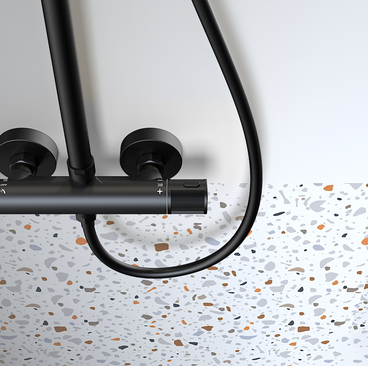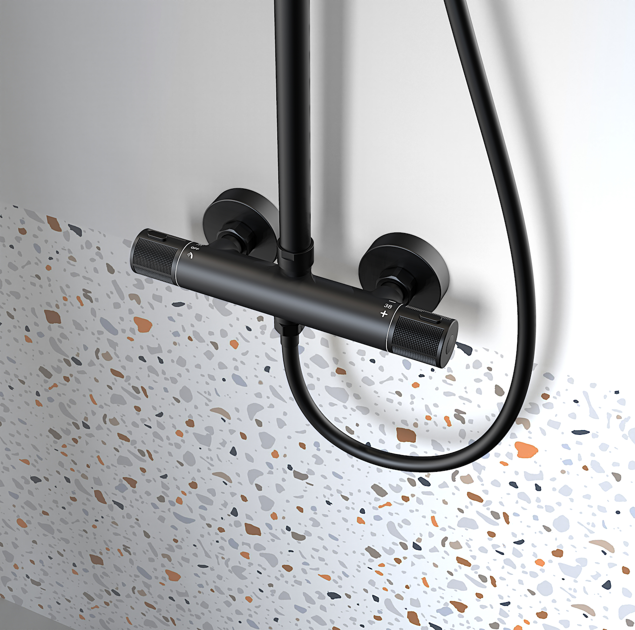 Celeste stoke 250 dusjsett matt sort m/dusjtermostat