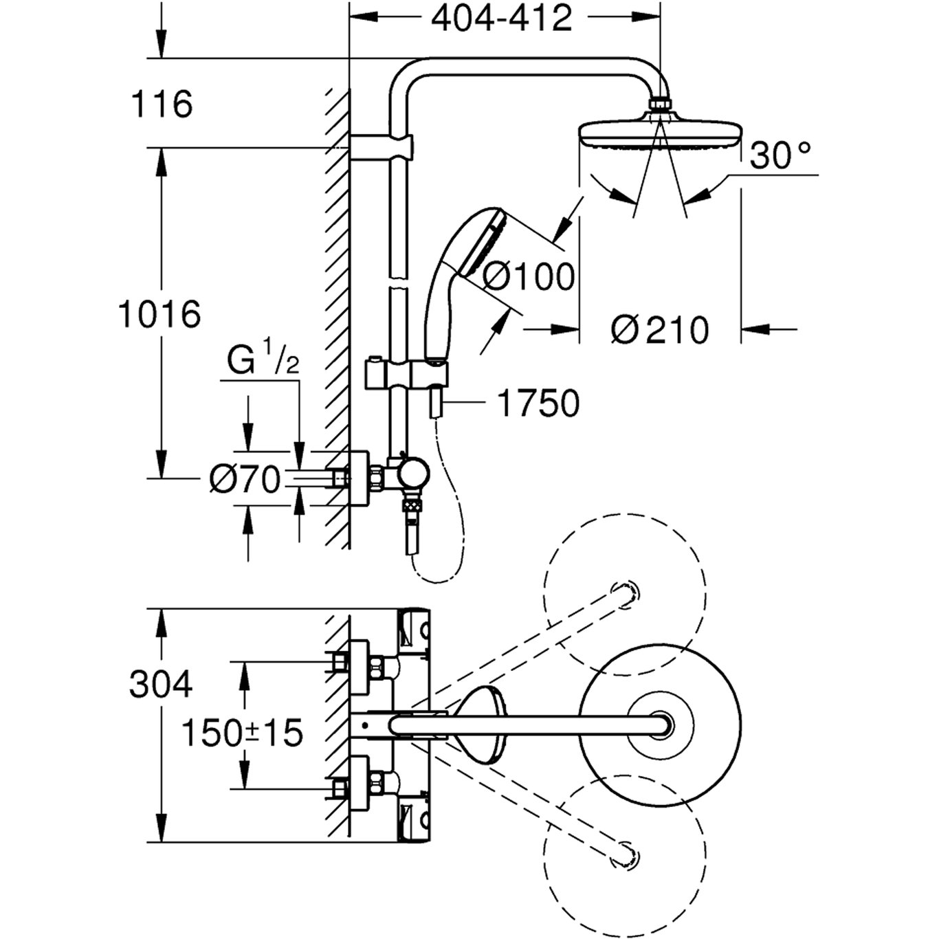 GROHE BAY DUSJSYSTEM 210 KROM