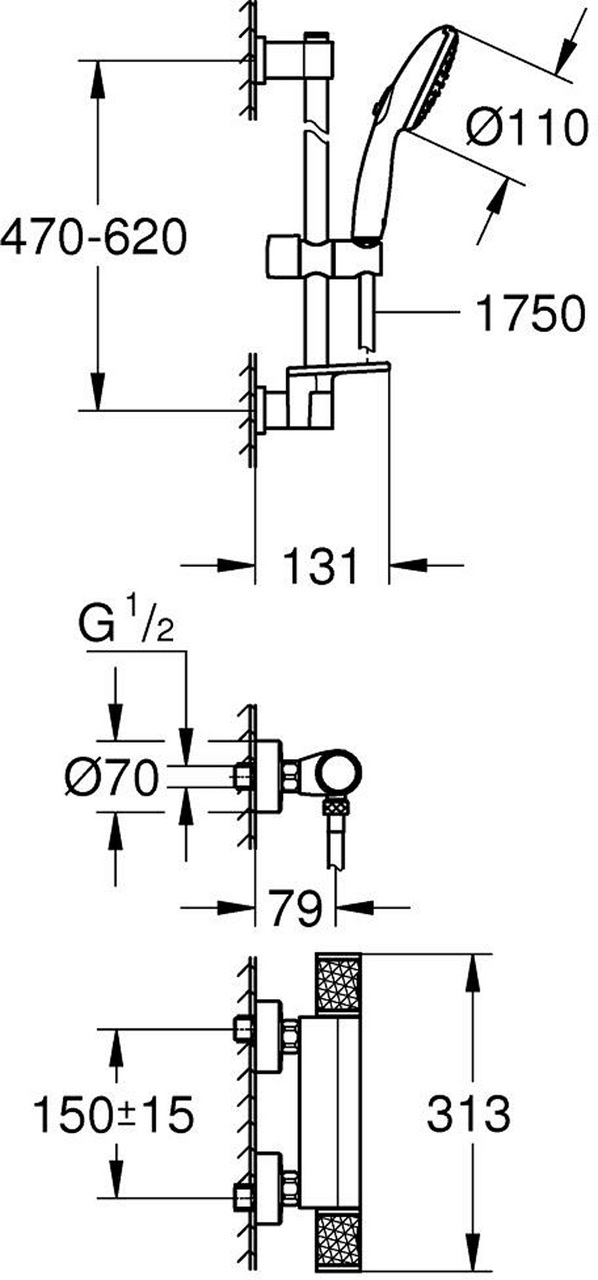 GROHE PRECISION FEEL DUSJTERMOSTAT M/3-SPRAY DUSJSETT 600 MM KROM