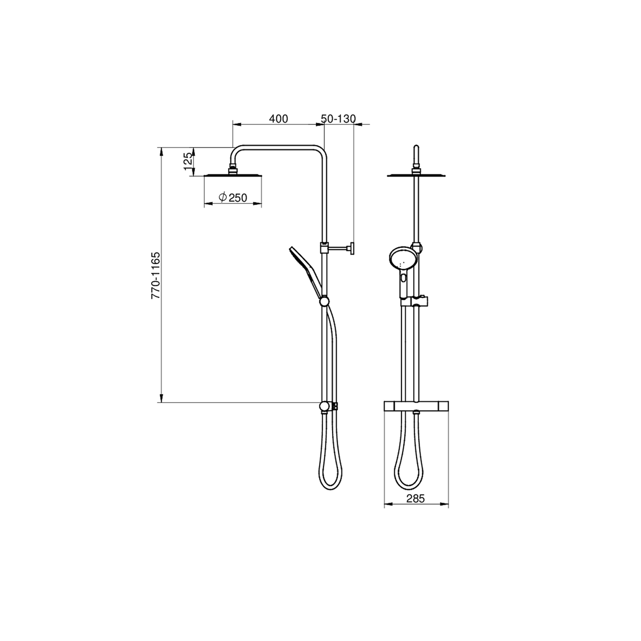 - Dusjarm: 400 mm