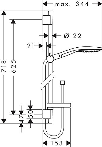 - Dusjstang:UnicaåS Puro med festeavstand på 625 mm (total høyde 718 mm)