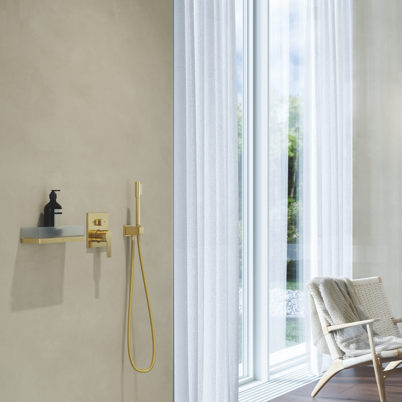 Grohe Euphoria Cube hånddusjuttak med dusjholder til vegg.