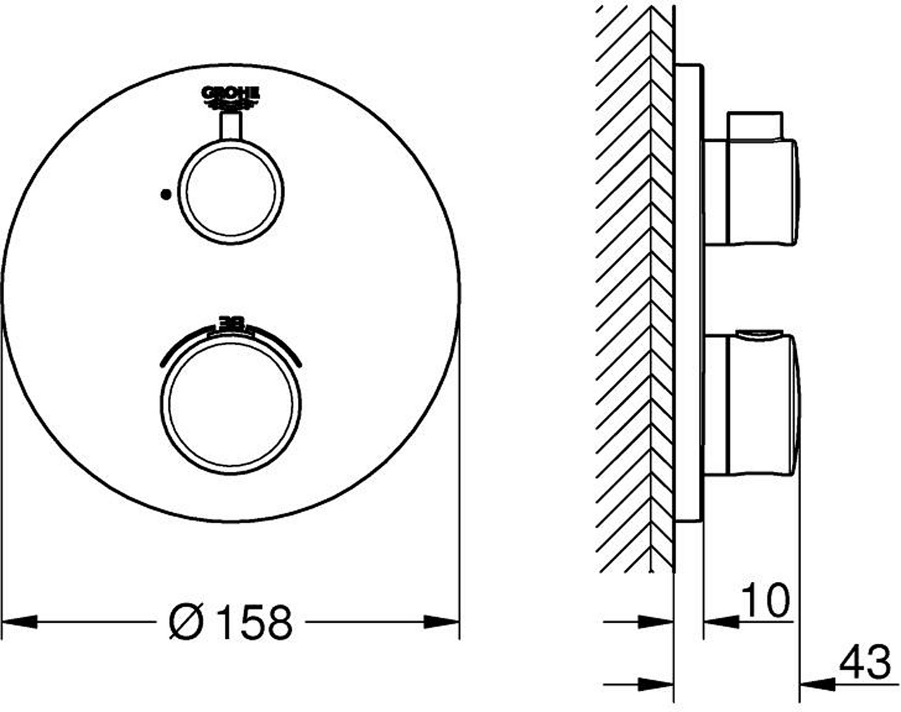 GROHE GROHTHERM DUSJTERMOSTAT RUND FOR INNBYGGING M/1 UTLØP KROM