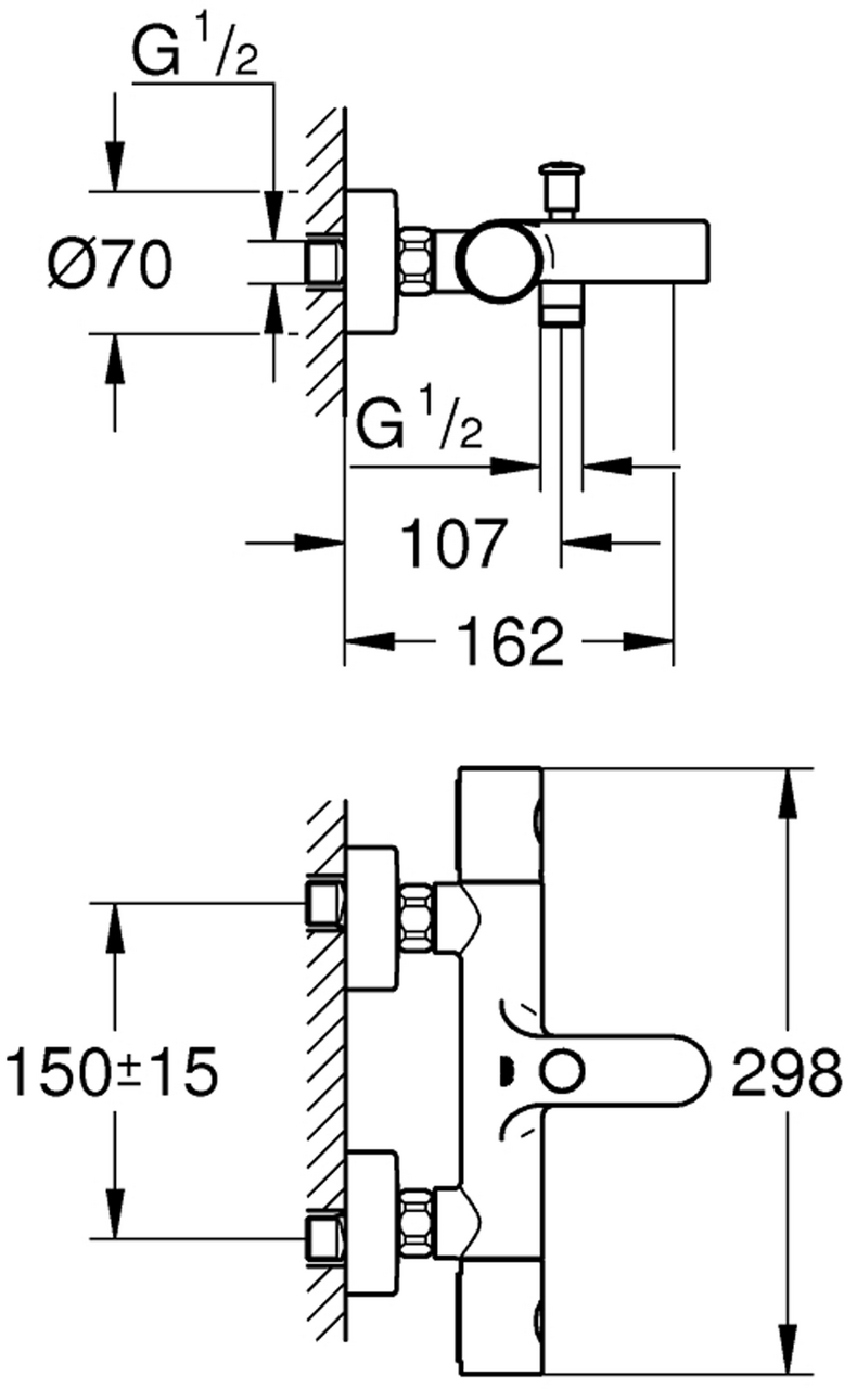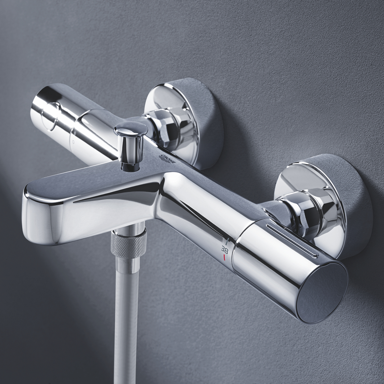 veggmontasjeGROHE Long-Life overflateGROHE MetalGrip ergonomisk formet metallhåndtakGROHE SafeStop ved 38°CGROHE SafeStop Plus valgfri temperaturbegrensning på 43°C inkludertGROHE TurboStat kompakt patronmed voks termoelementintegrert blandesperrereguleringsgrep med GROHE EcoButton(individuell EcoButton justeringsstopp)keramisk overdel 1/2", 180°dusjuttak bunn 1/2"perlatorinnbygget tilbakeslagsventilersilermed tilbakeslagsventilS-tilslutningerrosett i metallGROHE Water Saving-teknologi for mindre vannforbrukLeverandørens varenummer34774000