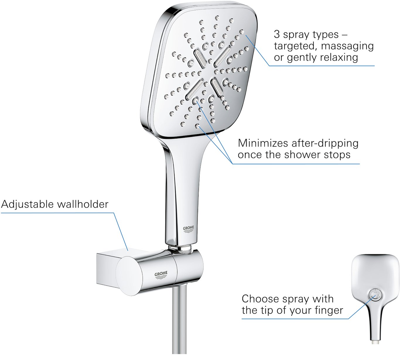 GROHE RAINSHOWER SMARTACTIVE 130 CUBE HÅNDDUSJ M/VEGGHOLDER 3-SPRAY KROM