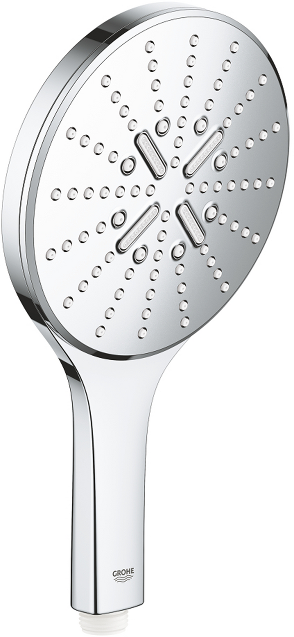 sprayplate kromspraymønstere:GROHE Rain inkluderer DripStop, Jet inkluderer DripStop, ActiveMassageGROHE Water Saving-teknologi for mindre vannforbrukmaximum flow rate (at 3 bar): 8.5 l/minGROHE DreamSpray perfekt strålemønsterGROHE SmartTip velg spraymønster med et enkelt klikkGROHE Long-Life overflateSpeedClean antikalksystemIndre WaterGuide for lengre levetiduniversalt monteringssytem, passeralle standard dusjslangervelegnet til gjennomstrømsvarmerLeverandørens varenummer26590000