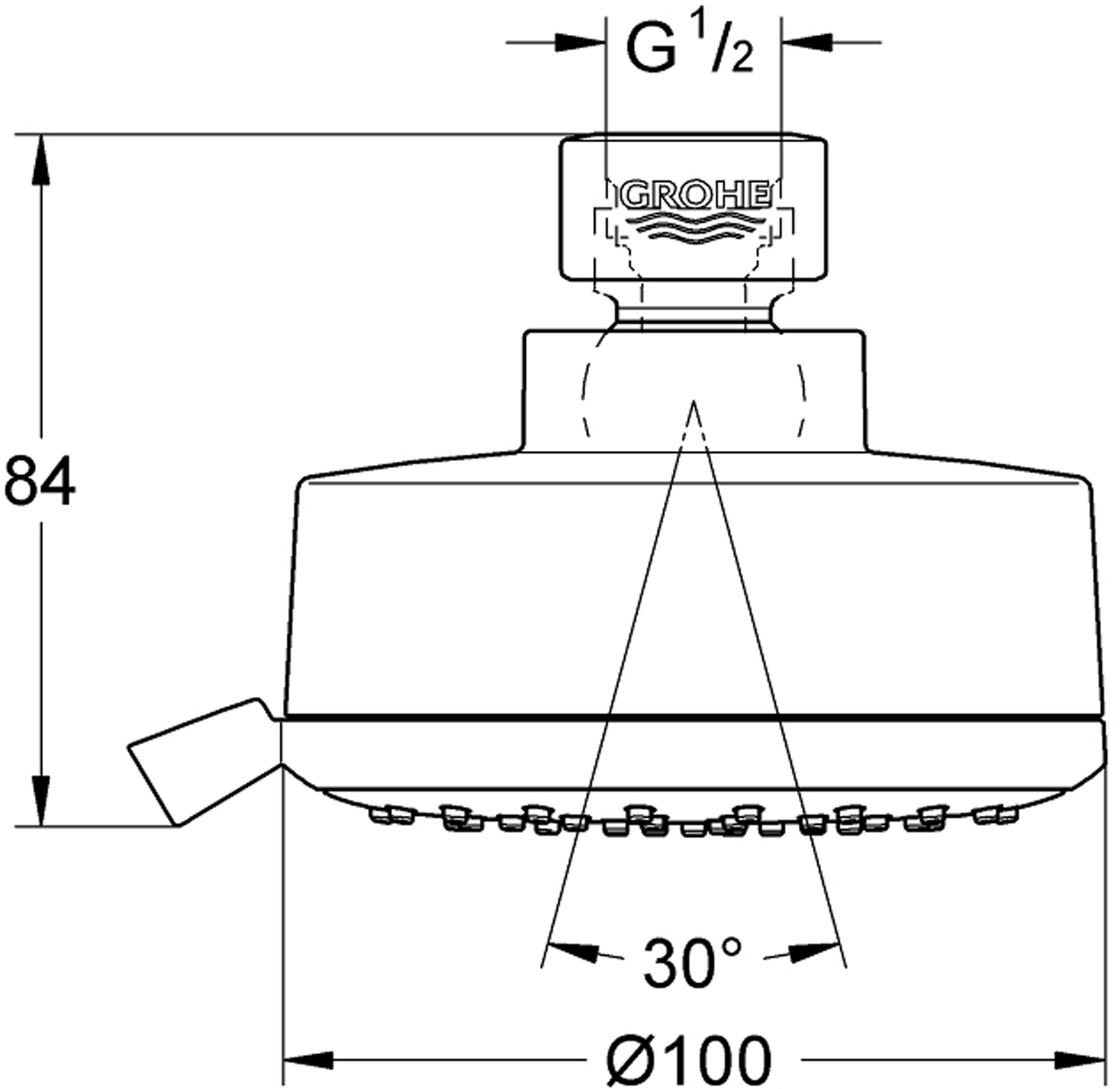 spraymønstere:GROHE Rain O², Rain, Massasje, Jetmaximum flow rate (at 3 bar): 8.5 l/minkuleledd med +/ - 20° roteringtilslutningsgjenger 1/2"GROHE Water Saving-teknologi for mindre vannforbrukGROHE DreamSpray perfekt strålemønsterGROHE Long-Life overflateSpeedClean antikalksystemIndre WaterGuide for lengre levetidvelegnet til gjennomstrømsvarmermin. trykk 1.0 barLeverandørens varenummer27591001