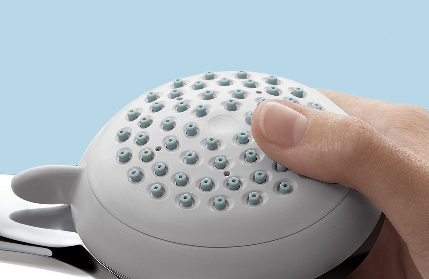 - Med Quick CleanQuick Clean:Hurtig rengjøring takket være elastiske silikonnupper. Gni lett vekk smuss og kalkavleiring med fingeren fremfor å skrubbe og skure