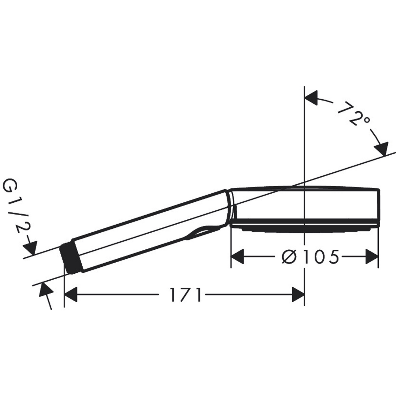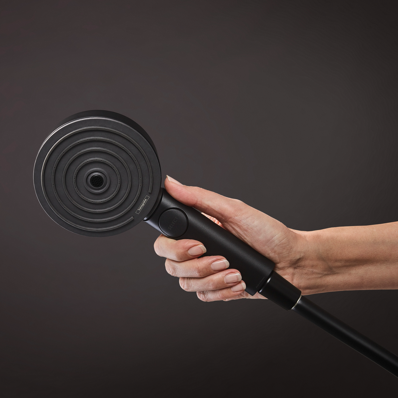 En stilren hånddusj fra Hansgrohe som kommer med tre forskjellige stråletyper, samt at den har en praktisk strålevalg via en select-knapp.