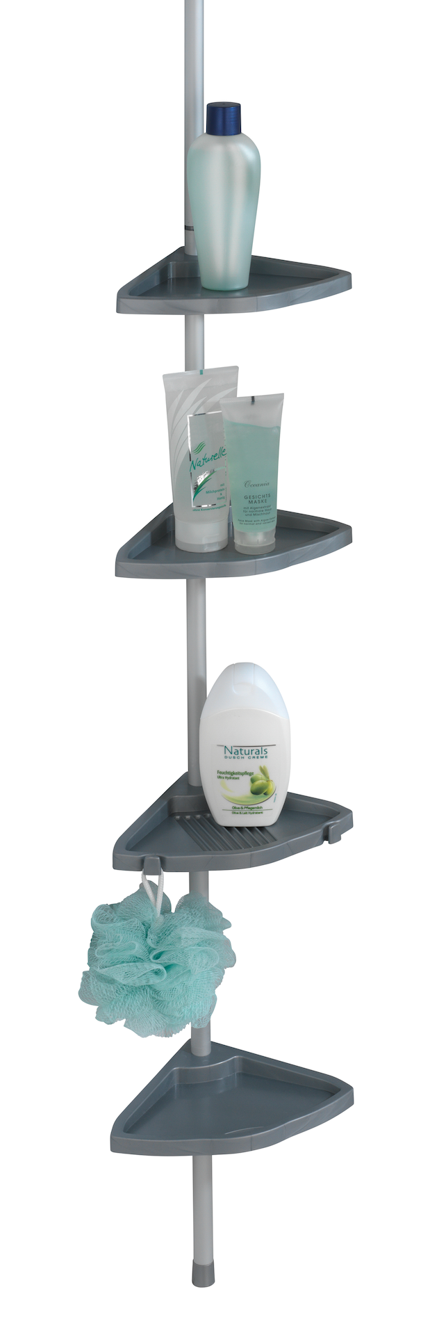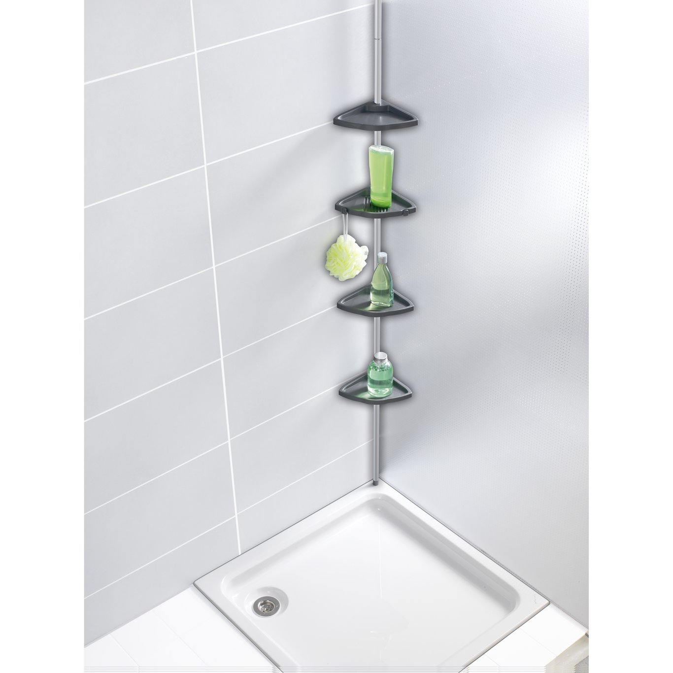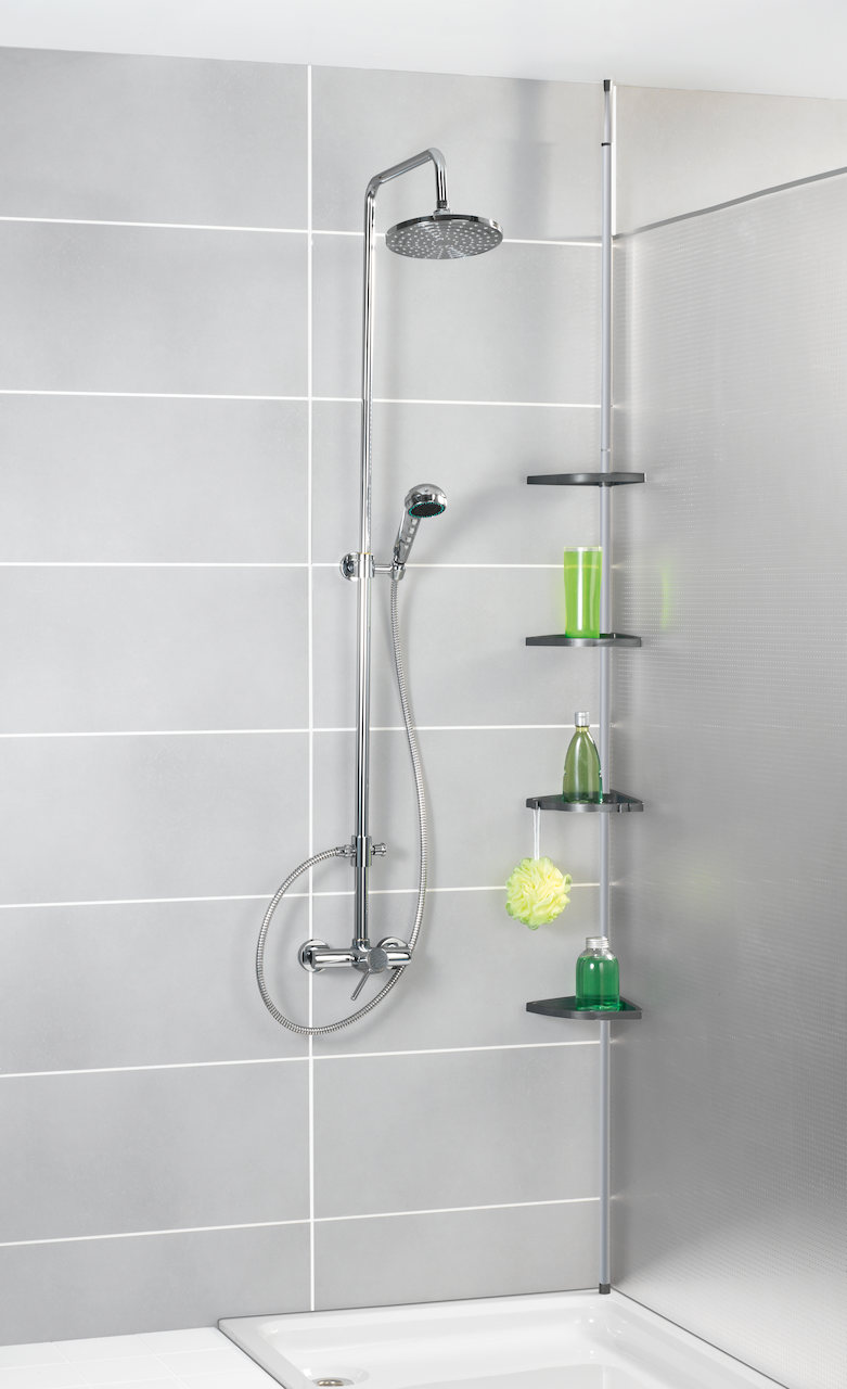 Wenko hjørnehylle m/4 hyller på alustang sølv