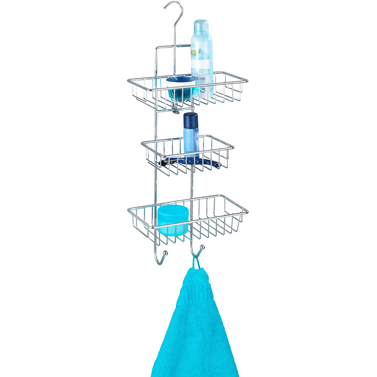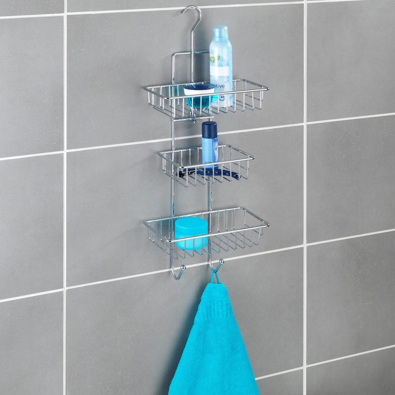 Wenko milano dushylle med 3 hyller & 2 kroker krom