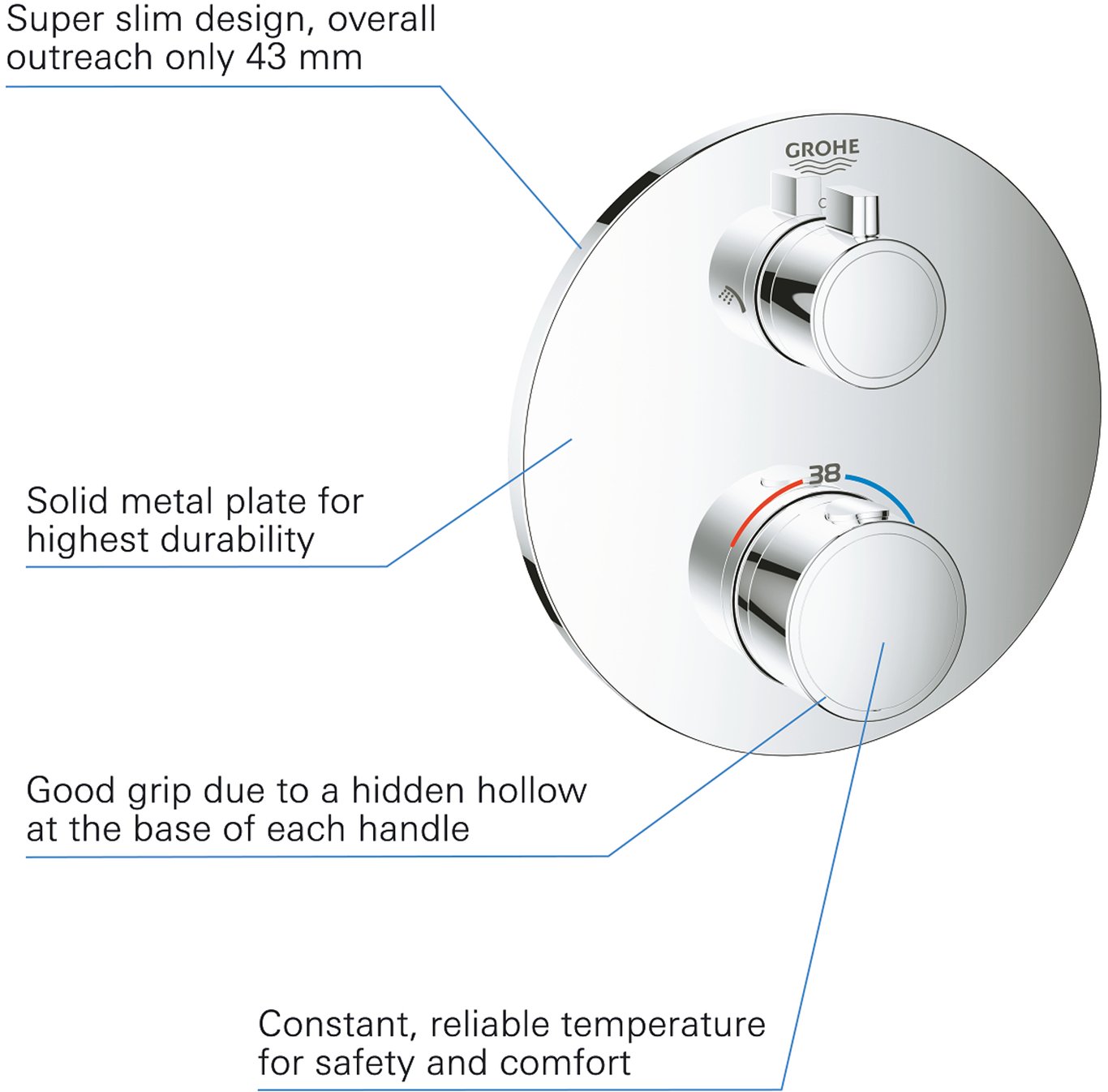 Grohe grohtherm dusjbatteri m/termostat for 2 uttak krom