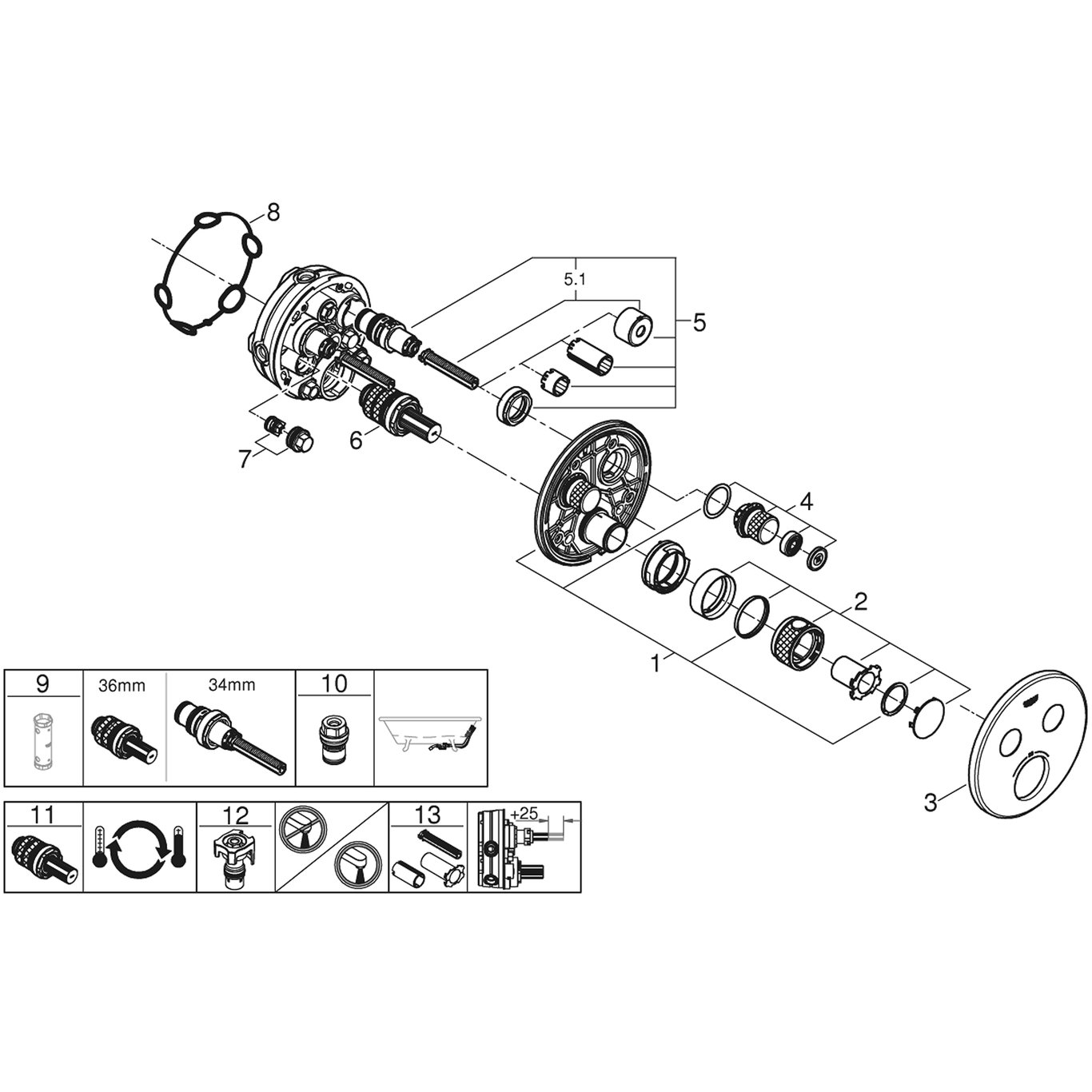 tilhørende innvendig del:GROHE Rapido SmartBox 35 600/35 604metall vegg rosett med GROHE FastFixation (dekket rosett og akseltetning, skjult feste), med tilbakevirkende kraft 6 ° justerbarGROHE Long-Life Shine-overflateSmartControl trykk for AV-PÅ, skru for volum justering fra GROHE Water Saving til Full FlowUtskiftbare symbolerGROHE TurboStat kompakt patronmed voks termoelementGROHE SafeStop ved 38°CGROHE SafeStop Plus valgfri temperaturbegrensning på 43°C / 46°C inkludertinnbygget kontraventil og smussamlerflere uttak kan kjøre samtidiguten rørsettflyte ytelse:utløp B = 24 l/minutløp C = 26 l/minutløp B+C = 29 l/minVann- og avløpsinstallasjoner må installeres av rørlegger.
