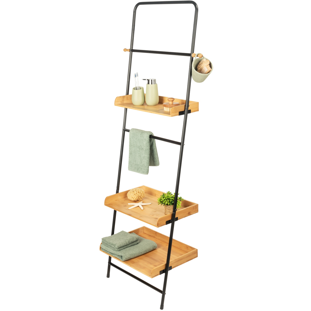 Dette stativet fra Wenko tilbyr rikelig med plass med sine tre hyller til håndklær, bøker, kjøkkenutstyr, tilbehør etc. Festemateriale for alternativ veggmontering er inkludert.