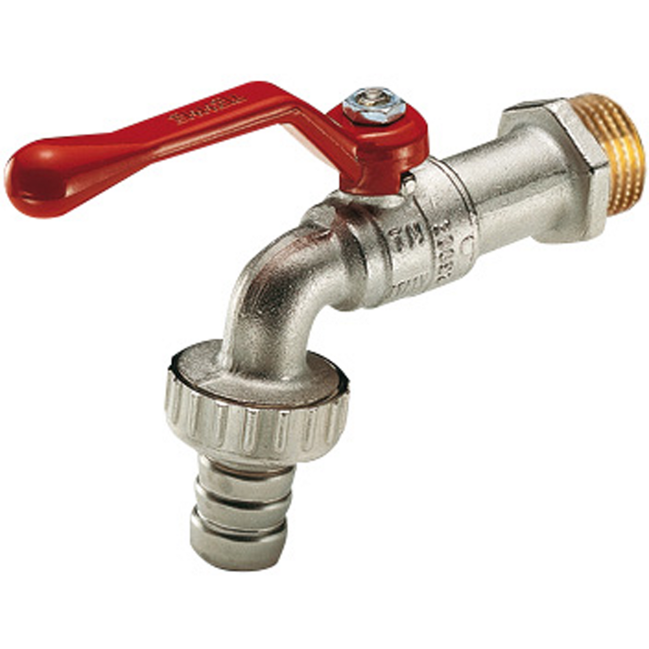 Kuleventil i nikkelbelagt utførelse med 1/2" slangetilkobling.
