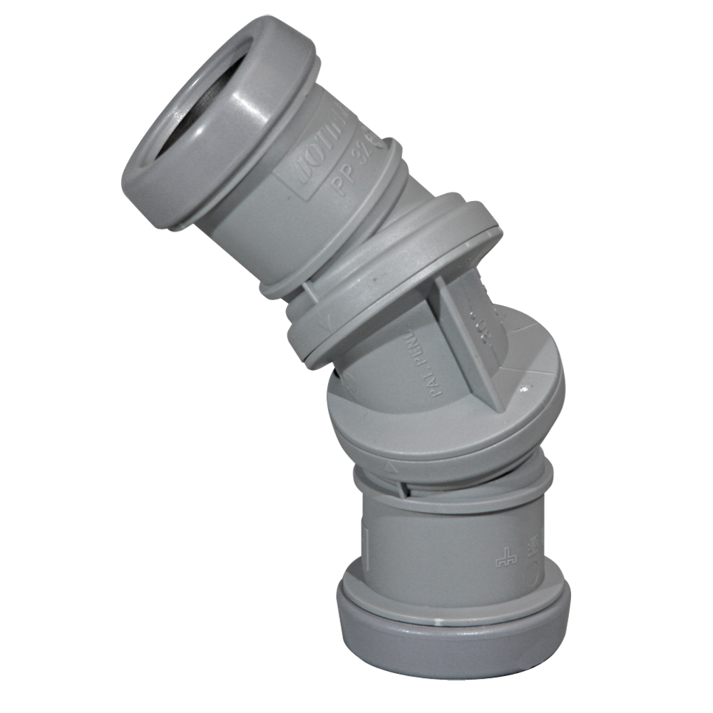 Lycro sine Jotiflex produkter er en serie med justerbare bend og gren for vann og avløp med fleksibel trinnløs dreining fra 0 - 90 grader. Gradetallene 0°, 15°, 30° 45°, 60° og 90° er markert på produktet og gjør det enkelt å stille inn rørbøyningen til ønsket vinkel/grad. Det er også mulig å stille inn vinkler «mellom» de 5 standard gradene.
