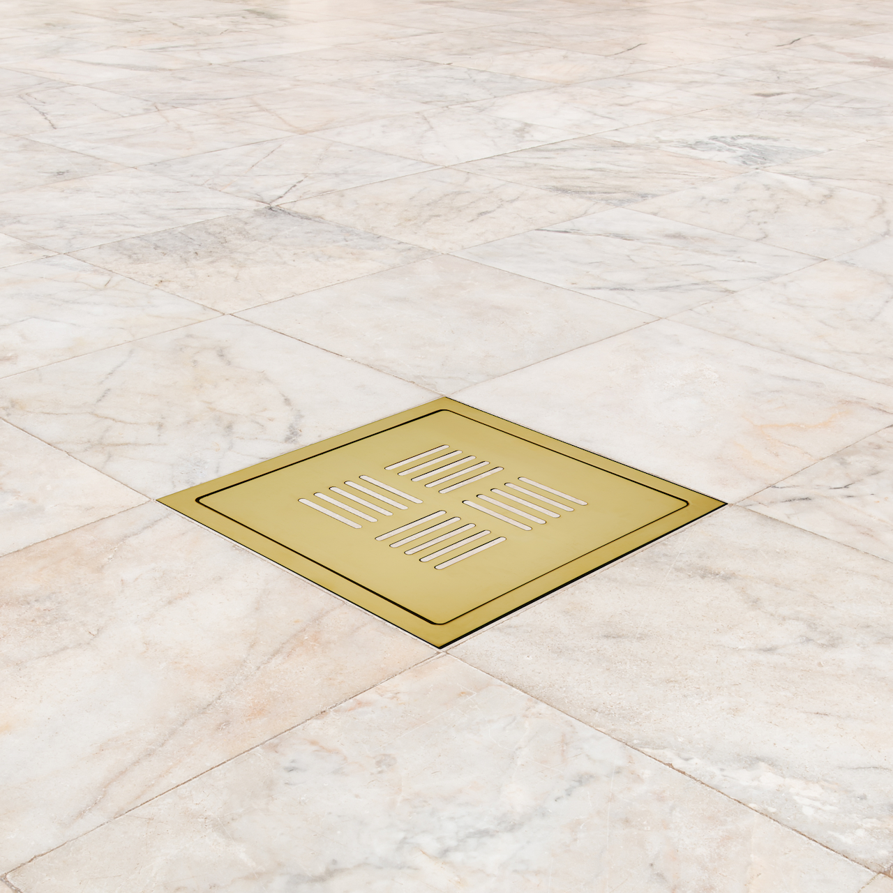 Denne design-slukristen kommer i polert messing, og vil gi et stilrent uttrykk i dusjen.