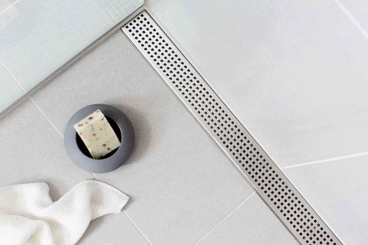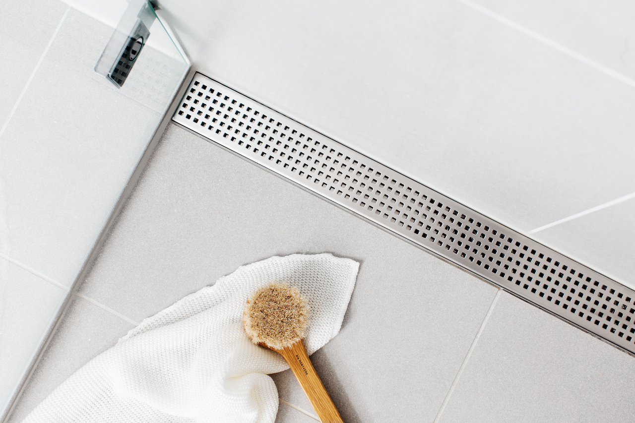 Med Purus Line lagt inntil veggen, blir det lett å opprette fall i kun én retning. Det gir en jevn, flat overflate der du ikke trenger å stå på sluket. I tillegg kan du legge de samme store flisene i dusjen som i resten av badet, noen som hever helhetsinntrykket og forenkler renholdet.
