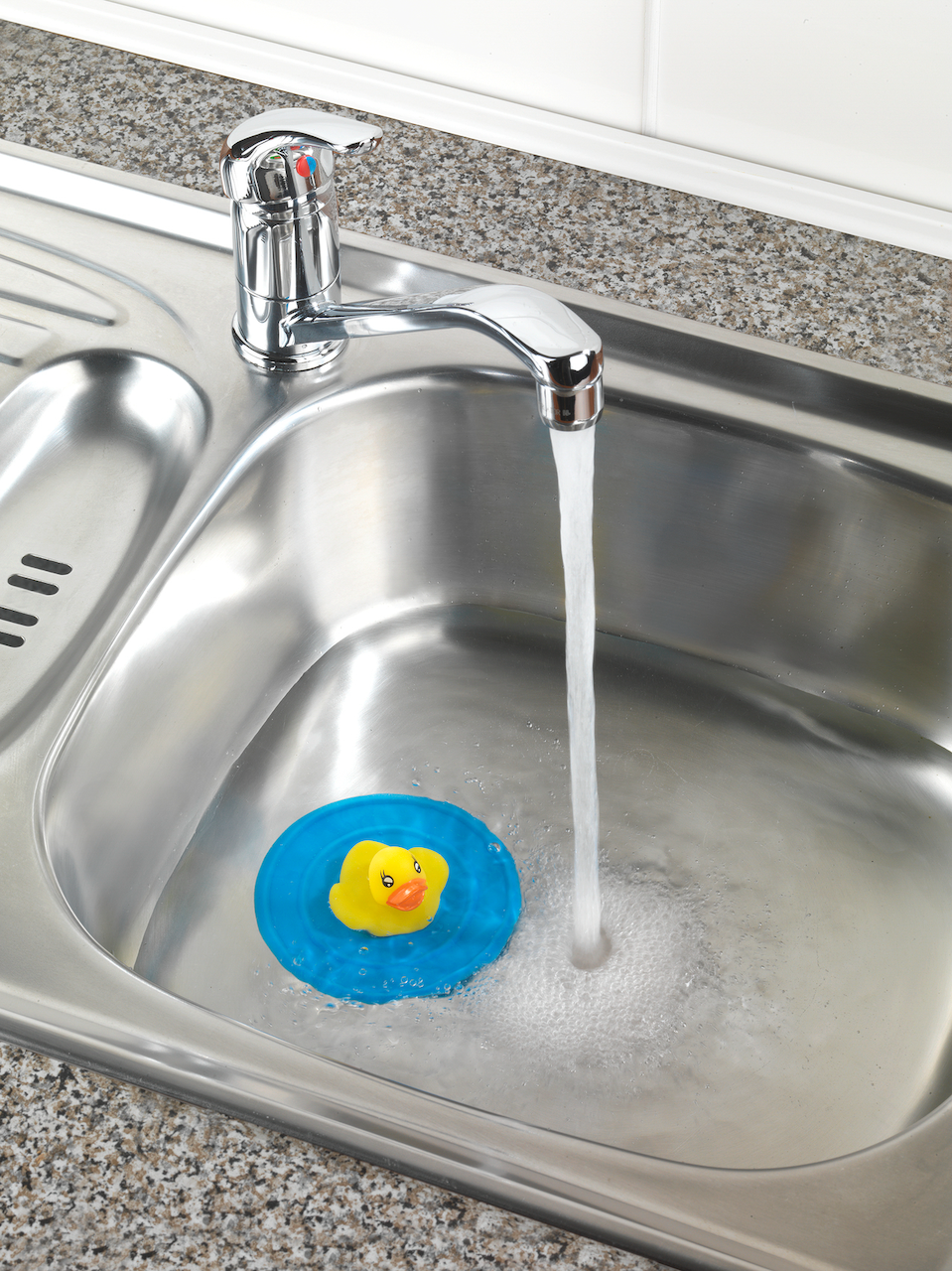 Morsom universal dreneringplugg fra Wenko. Plasseres over sluket i enhver vask og vannet vil holde seg i vasken. Kan også brues i badekar.