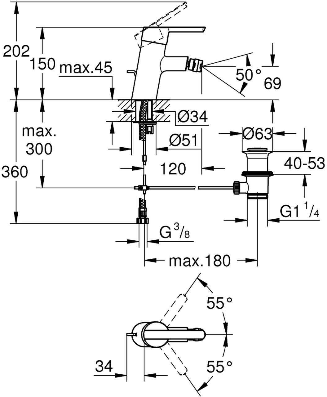 GROHE FEEL S BIDETARMATUR M/OPPLØFT KROM