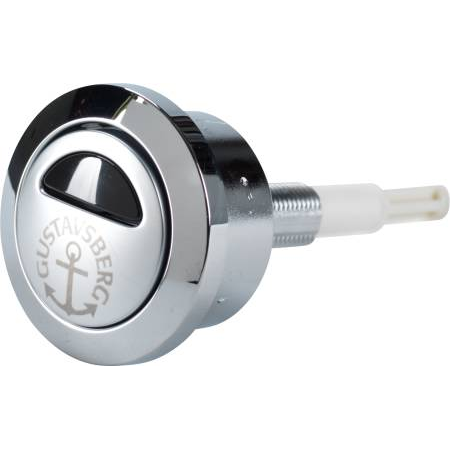 Trykknapp i krom fra Gustavsberg. Trykknappen passer til toalettmodellene Nordic år 2002-, Nordic 300-serien år 1992-2002, Arctic år 2005-2017 og Logic år 2007-2013.