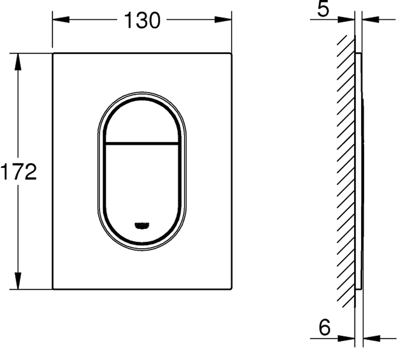 Denne trykkplaten fra Grohe har et stilrent design, og et slitesterkt belegg som er enkelt å holde rent. Trykkplaten er mindre enn vanlige trykkplater, og monteres loddrett.