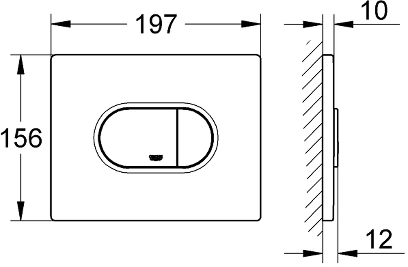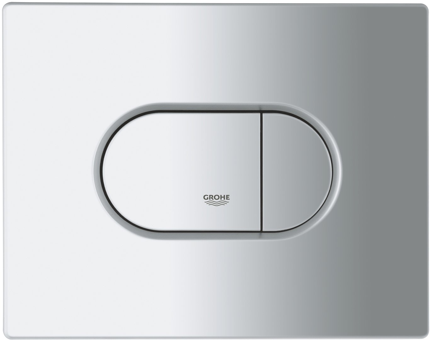Denne trykkplaten fra Grohe har et stilrent design, med en slitesterk overflate i matt krom. Den monteres vannrett.