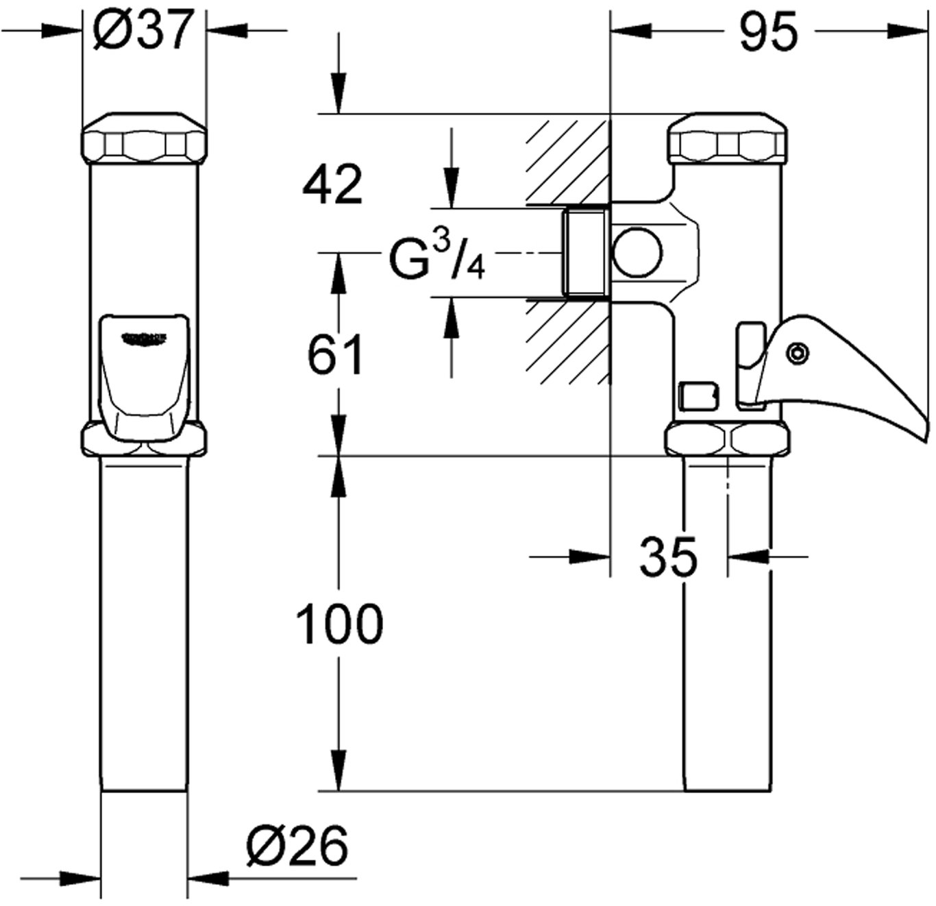 3/4"messingGROHE StarLight krom overflatetil flat- og dyp modellmed spylestrømsreguleringLeverandørens varenummer37139000