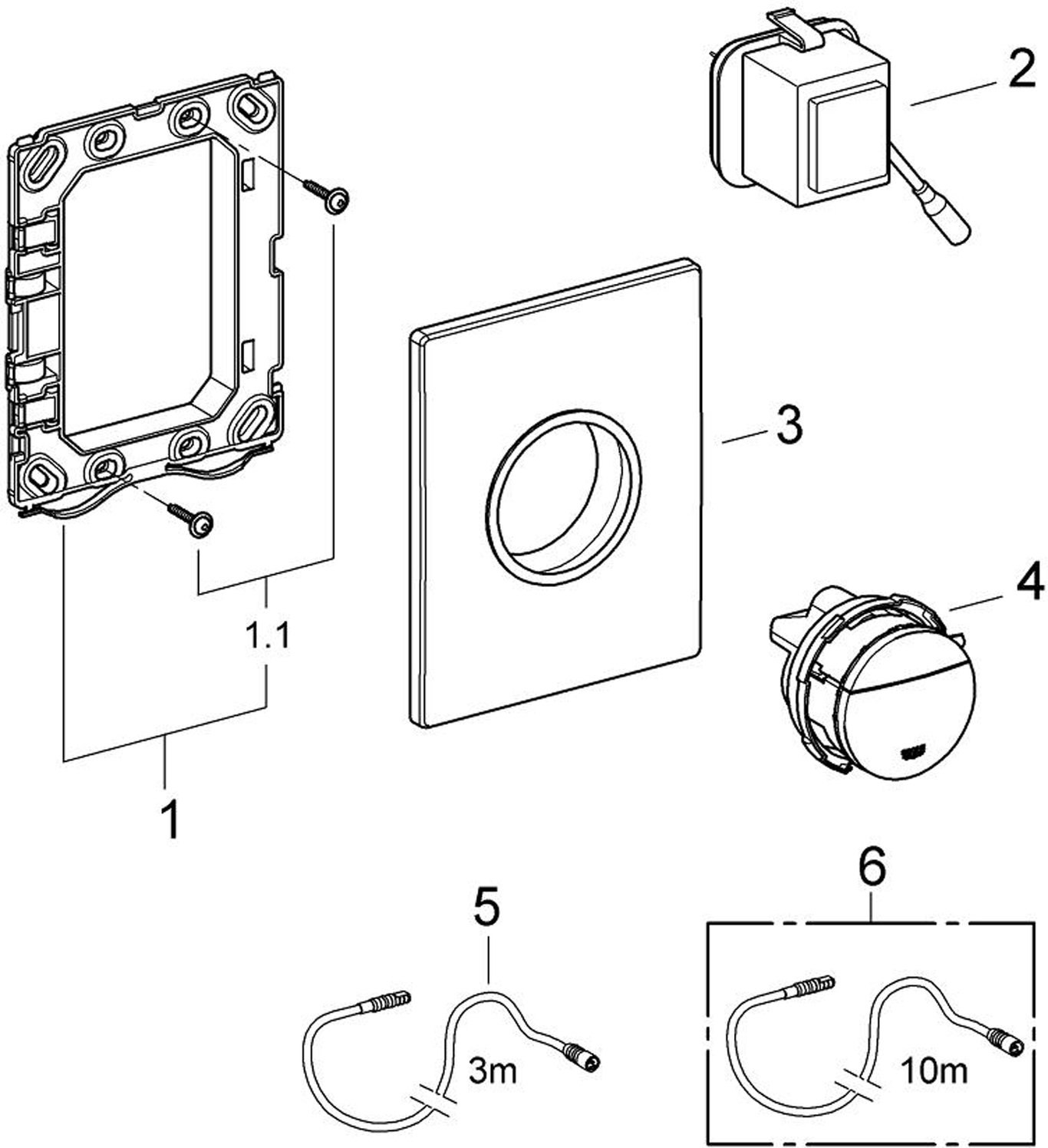 til hel- og halvspyling og start/stopputvendig markert aktiveringmed LED belysning i blå, rød, gul, grønnindividuell justering av lysfargeav/på brytertimer for individuell regulator3 m forbindelseskabeltransformator til ekstern monteringtilslutningsspenning 230 V AC50/60 Hz, 2,0 VA, Dette produktet inneholder innebygde LED-lys, som ikke kan skiftes: energieffektivitet klasse :A+CE-nummertil pneumatisk avløpsventil AV1til loddrett og vannrett montering156 x 197 mm, av ABSGROHE StarLight krom overflateGROHE watersaving-teknologi for mindrevannforbruktil Rapid SL og Uniset GD2 sisternerfor bruk til Rapid SLX kreves inspeksjonsluke 66 791 000 (selges separat)Leverandørens varenummer38809000