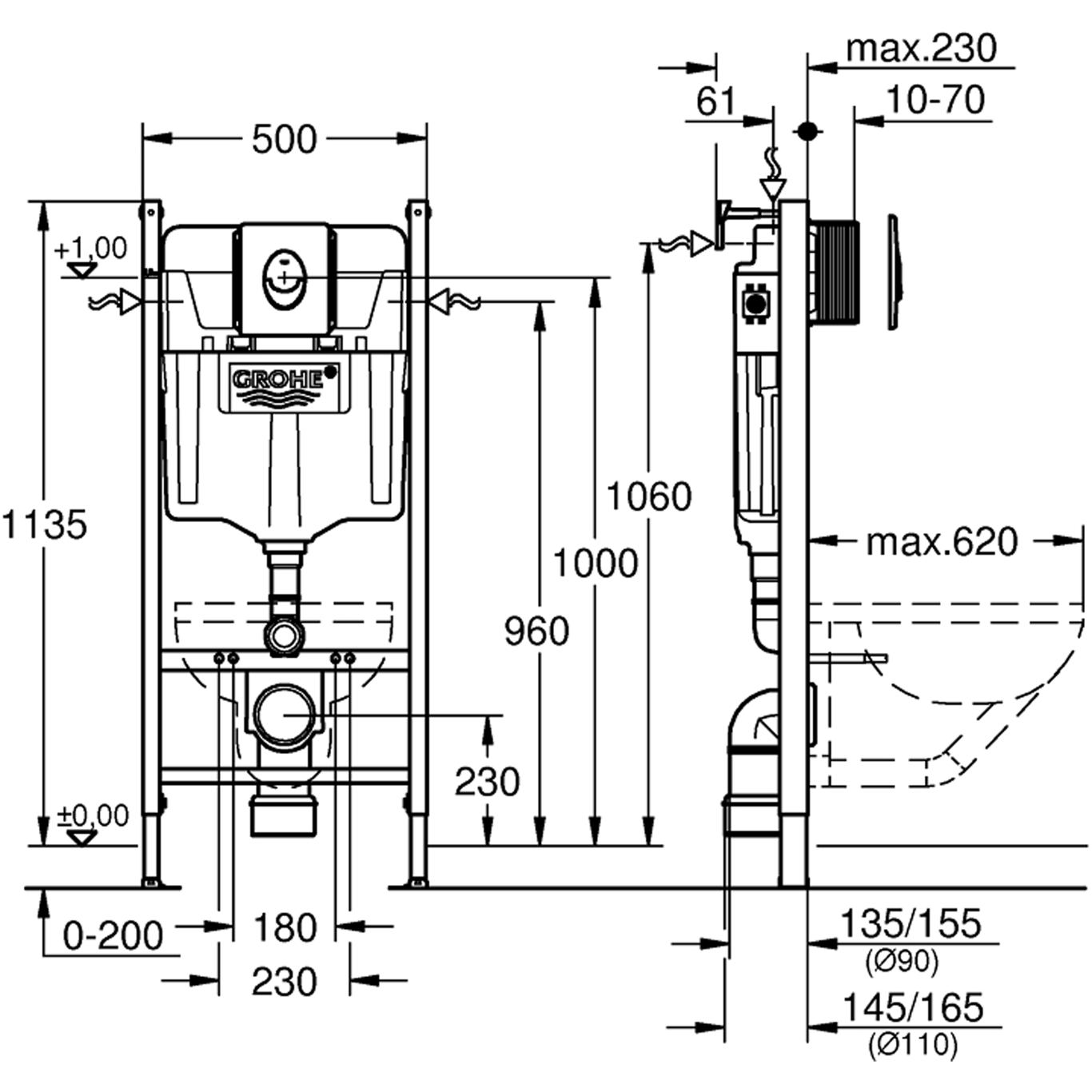 Grohe rapid sl sisterne m/skate air trykknapp krom