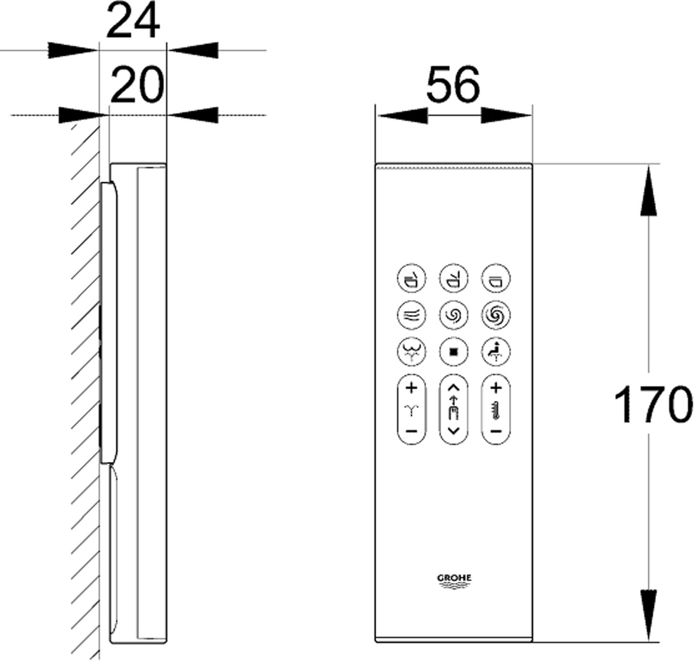 GROHE SENSIA ARENA FJERNKONTROLL M/VEGGHOLDER