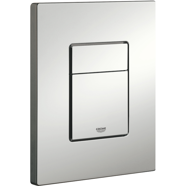 Trykkplaten Skate Cosmopolitan fra Grohe er slitesterk og enkel å rengjøre. Den kan monteres både loddrett og vannrett.