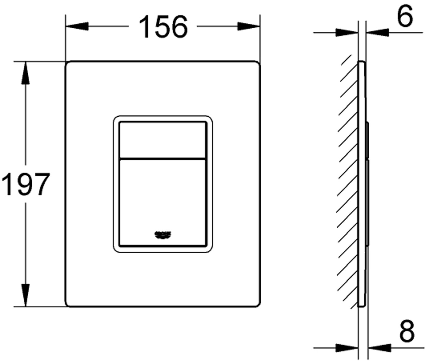 med speiloverflatebetjeningsknapp av plastikk, titantil hel- og halvspyling og start/stopptil pneumatisk avløpsventil AV1til loddrett og vannrett montering156 x 197 mmprodusert i herdet sikkerhetsglassfestesettGROHE watersaving-teknologi for mindrevannforbruktil Rapid SL og Uniset GD2 sisternerfor bruk til Rapid SLX kreves inspeksjonsluke 66 791 000 (selges separat)Leverandørens varenummer389160A0