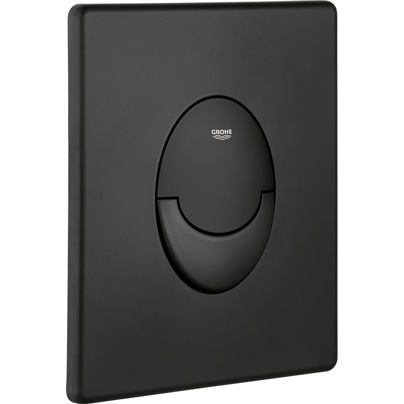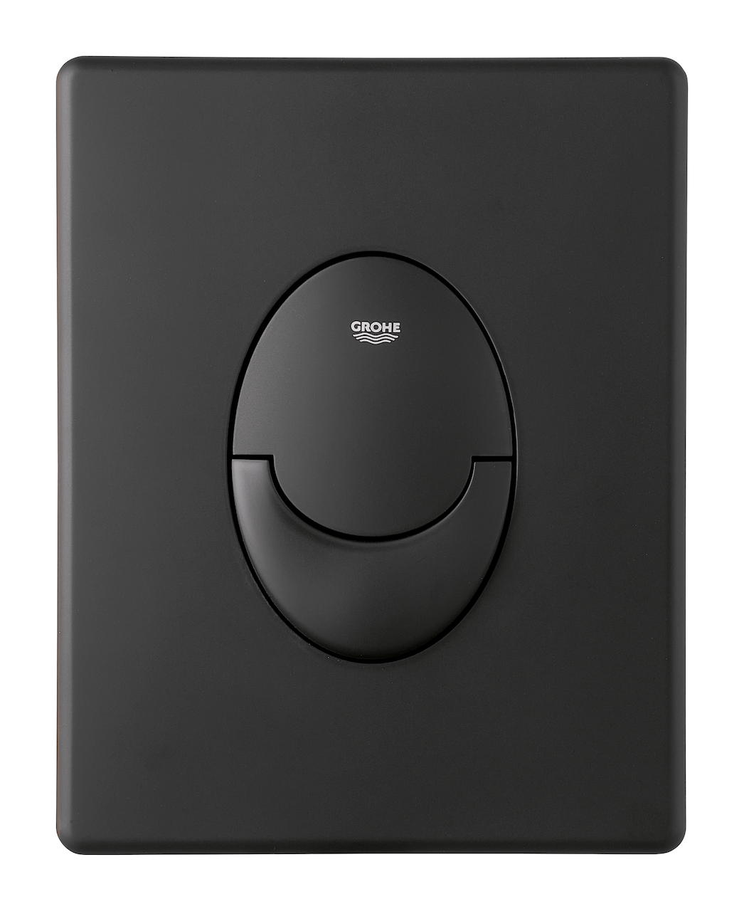 Trykkplaten Start fra Grohe har et stilrent design, og en matt sort overflate. Den monteres loddrett.