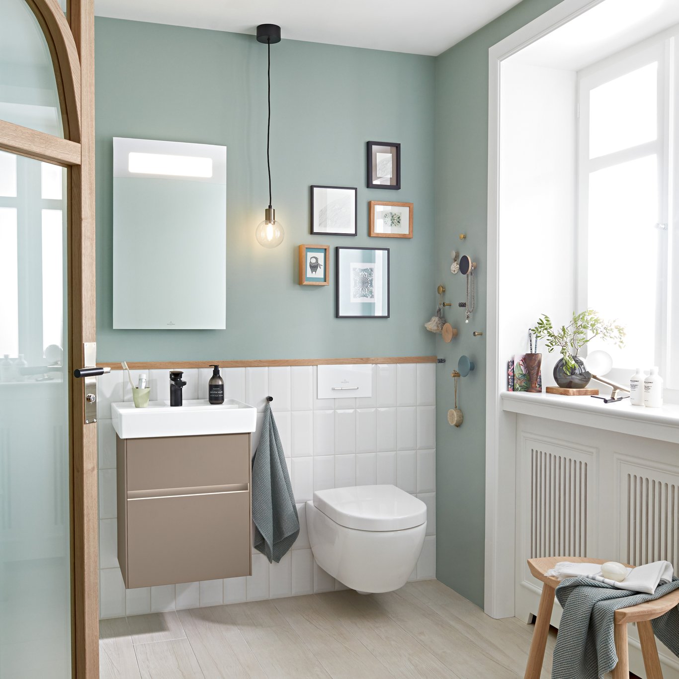 Denne trykkplaten fra Villeroy & Boch har et stilrent design, og kommer med vannbesparende dobbelspyling.