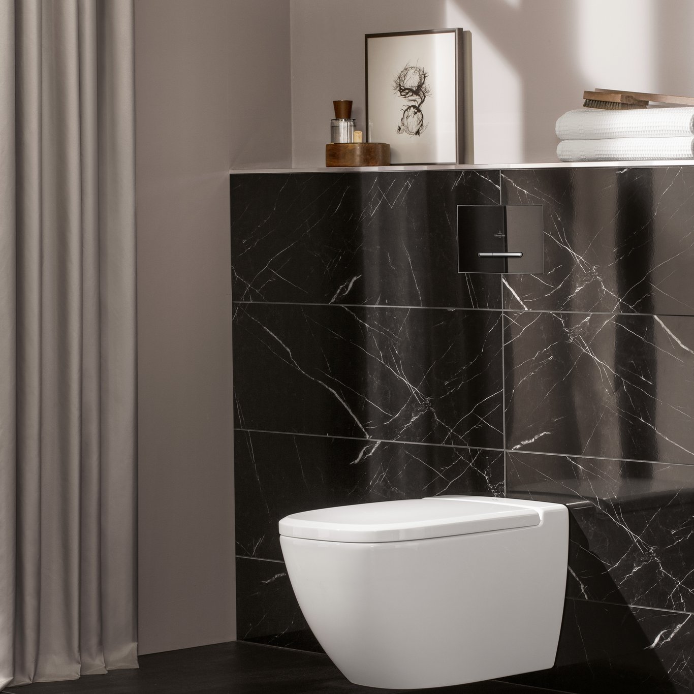Denne trykkplaten fra Villeroy & Boch har et stilrent design, og kommer med vannbesparende dobbelspyling.