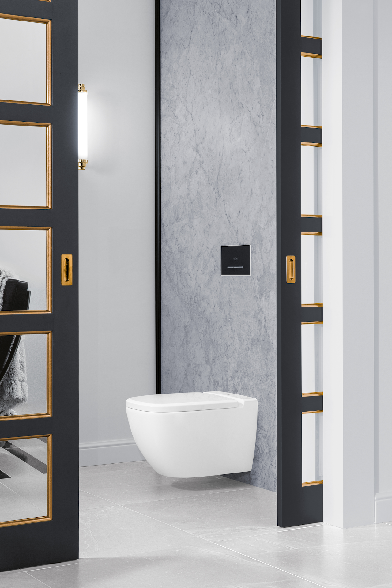 Denne trykkplaten fra Villeroy & Boch har et stilrent design, og kommer med vannbesparende dobbelspyling.