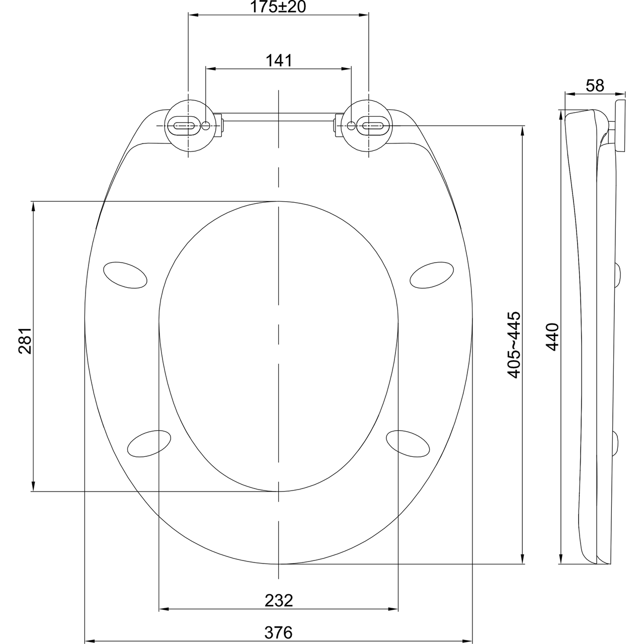 Dette toalettsetet fra Celeste er et O-formet toalettsete i slitesterk, blank hvit duroplast.