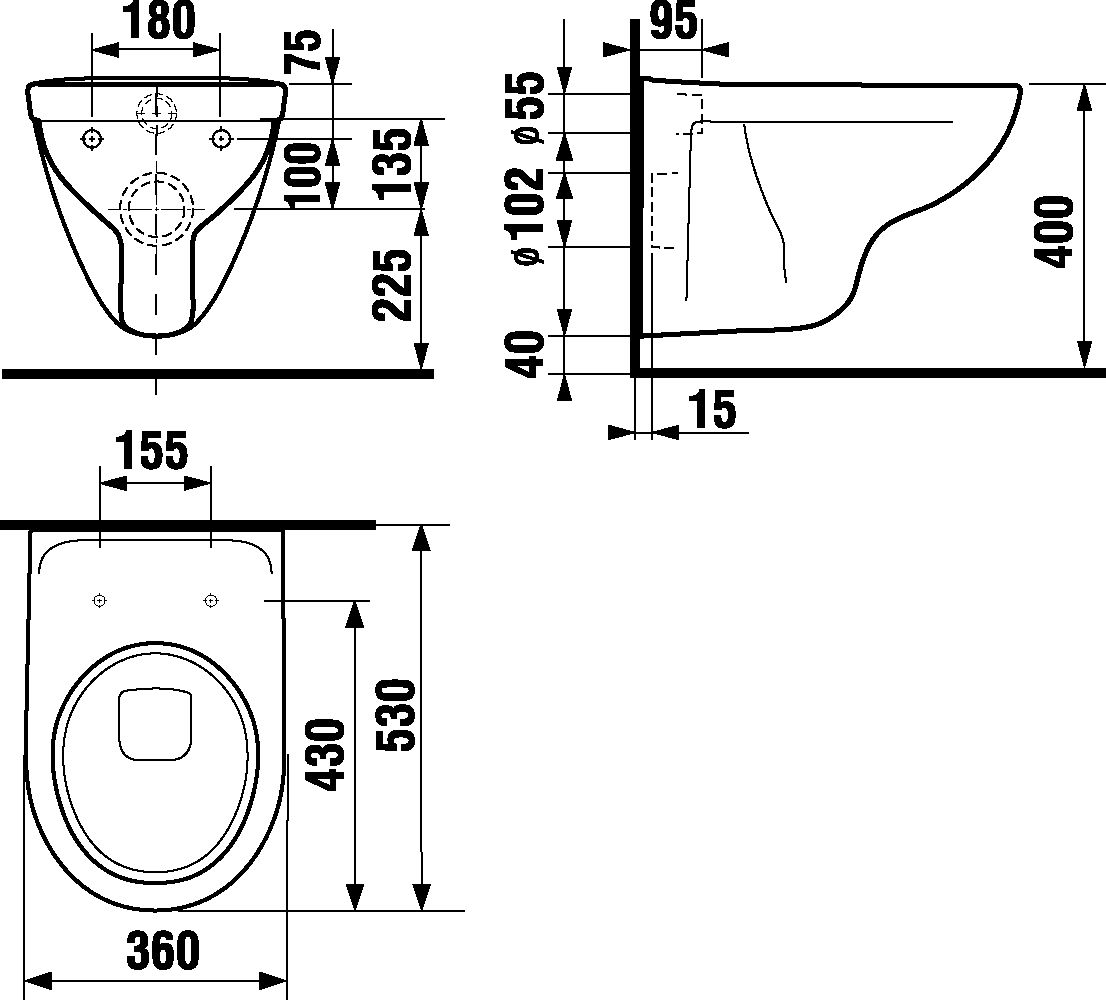 LYRA • JIKA, Vegghengt toalett rimless, hvit.