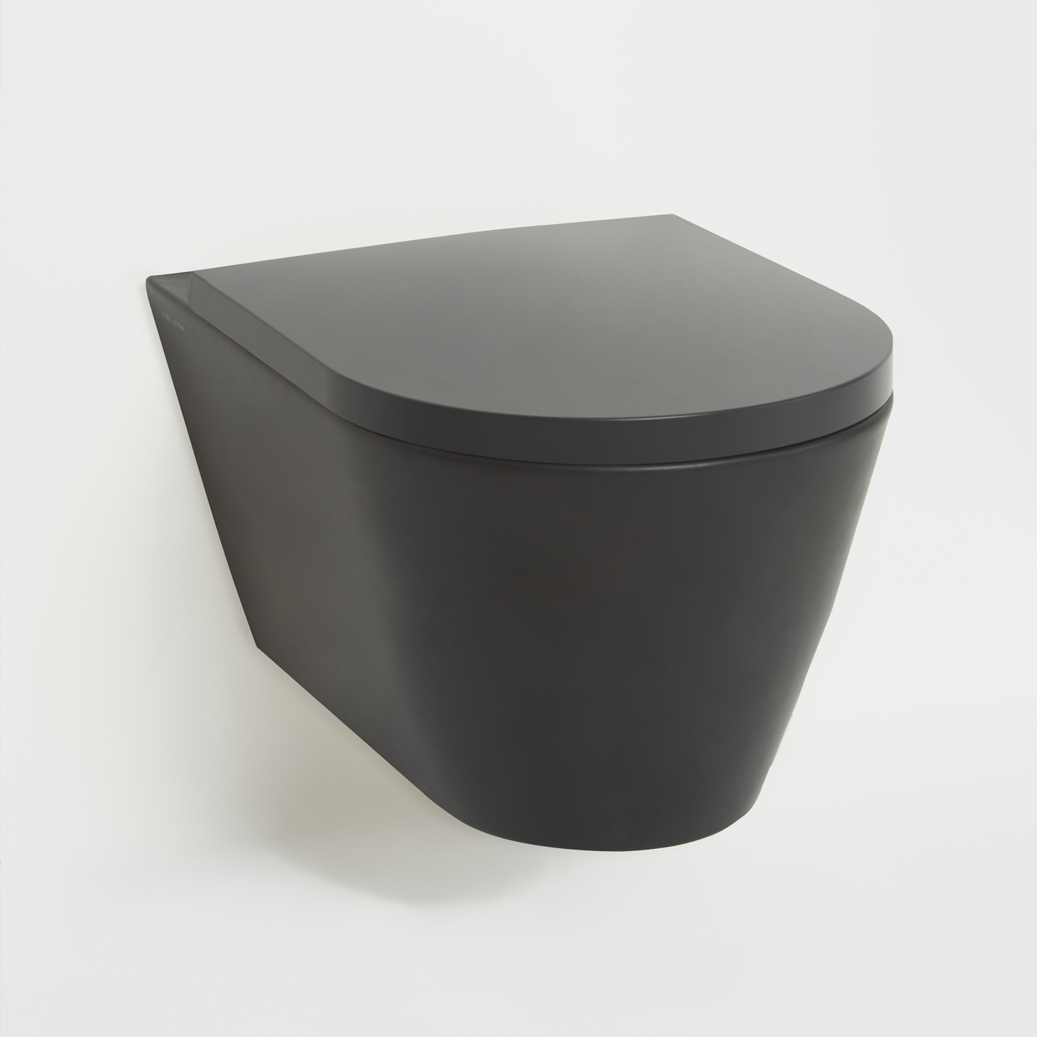 Dette vegghengte toalettet fra Laufen har rene linjer og en elegant, matt sort finish. Det passer godt inn på ethvert moderne baderom.