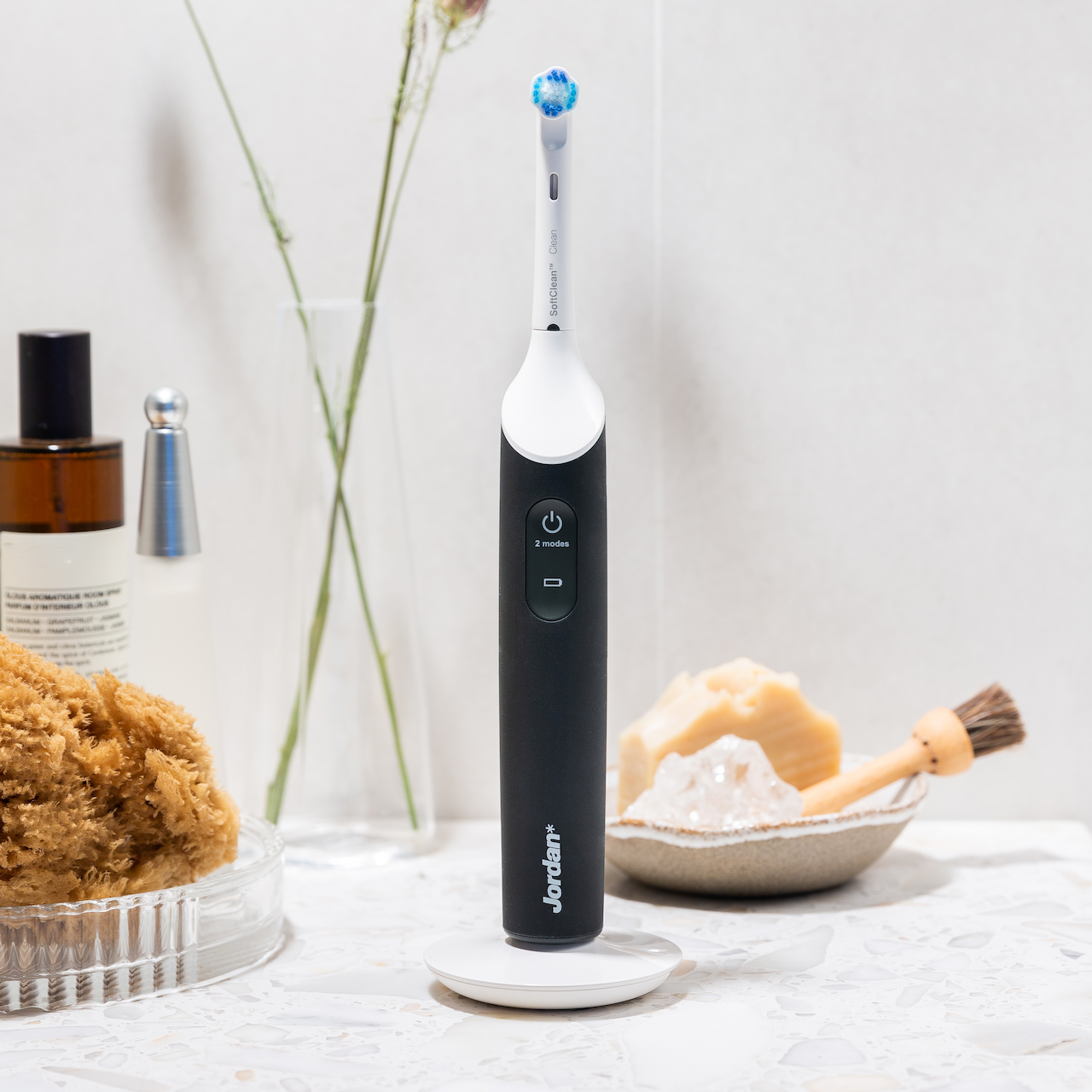 Denne elektriske tannbørsten fra Jordan reduserer plakk, pusser bedre mellom tennene og tar bedre vare på tannkjøttet sammenlignet med en vanlig manuell tannbørste.